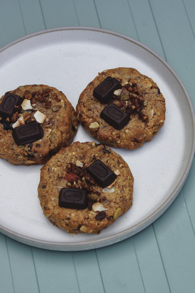 Grain-free granola cookies packed with seeds and nuts, naturally sweetened with pure Canadian maple syrup. The ideal healthy snack, perfect for busy mums.
