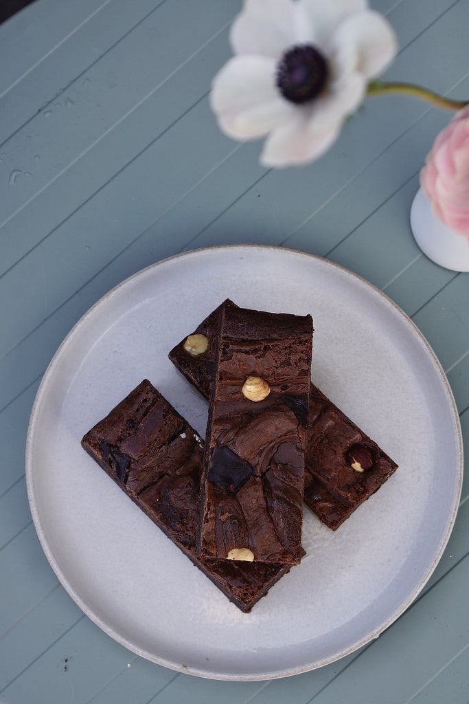Our fudgy house-made brownie, loaded with Whittakers dark choc chunks, hazelnuts & dutch cacao.